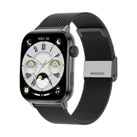 Wiwu SW08 Black Bluetooth Calling Smart Watch with Metallic + Silicone Strap
