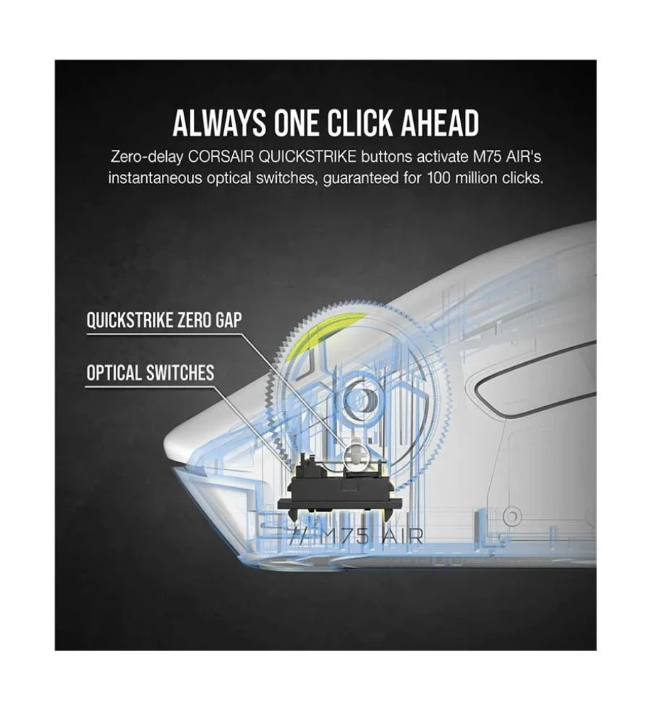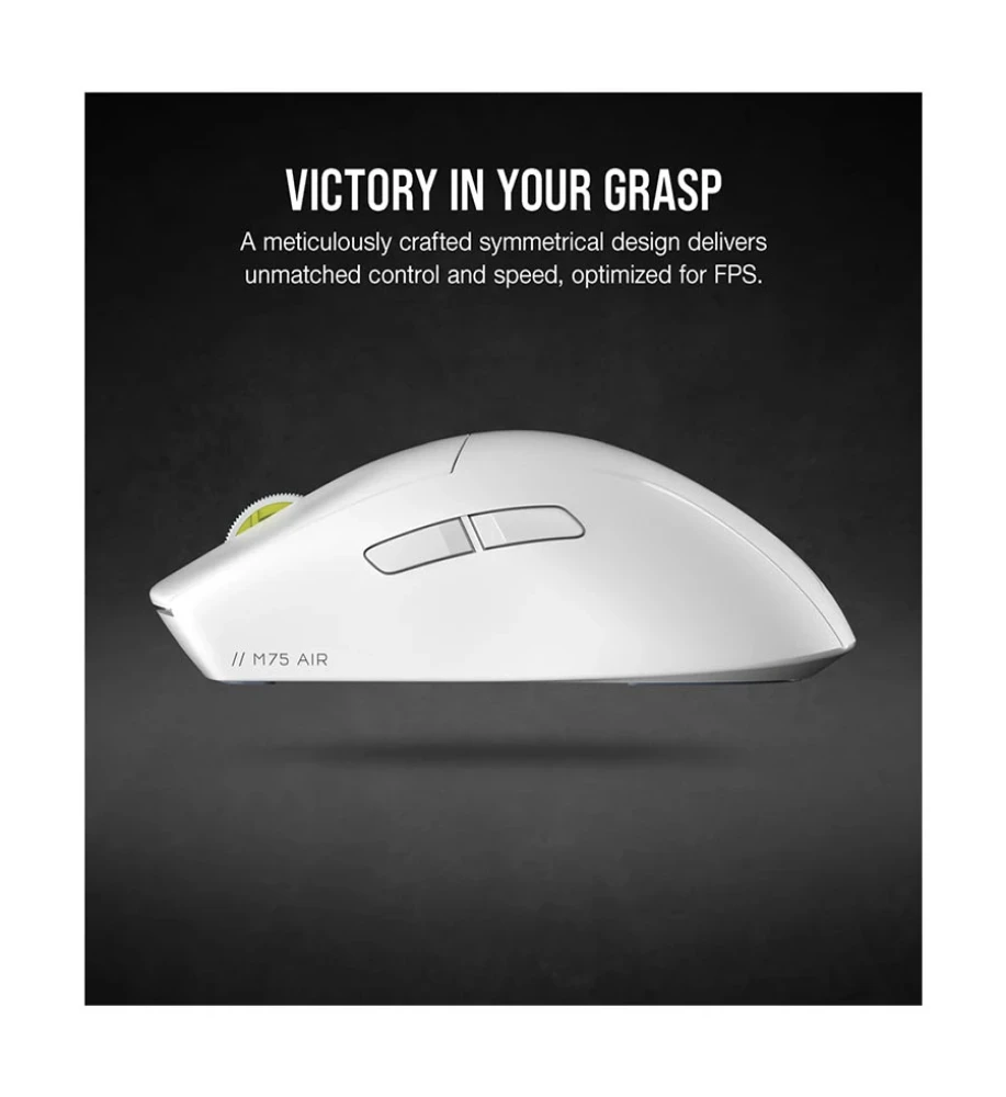 Defined in ambition. Built through rigor. M75 AIR deploys an ultra-lightweight, symmetrical mouse shape, expertly crafted to let nothing come between you and top-tier play.