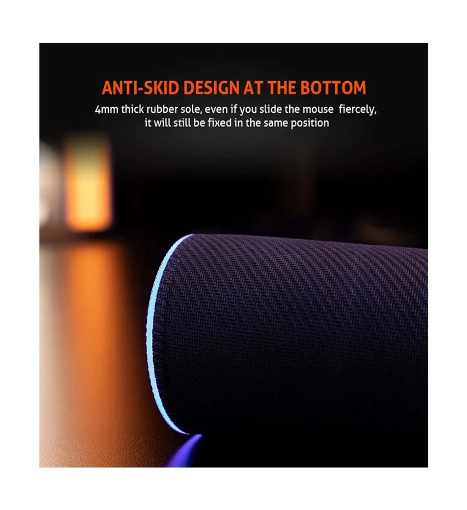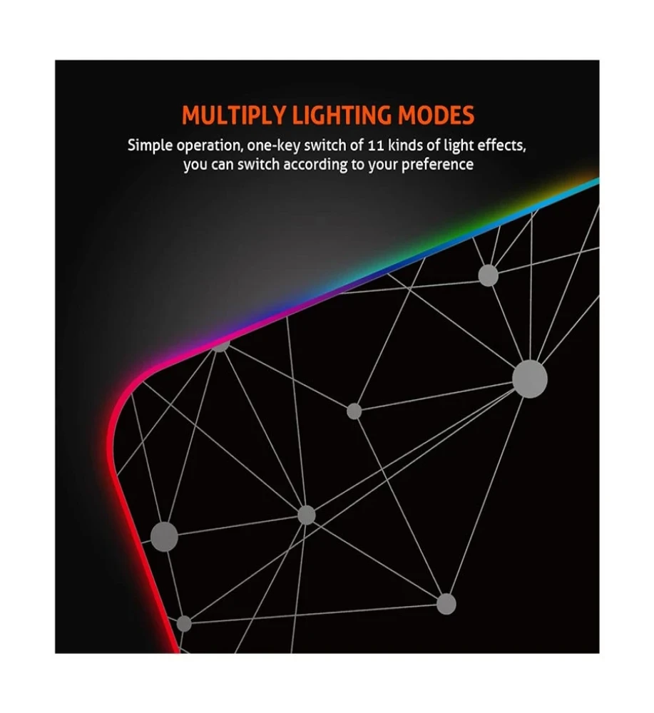 Smooth fabric precise positioning For an immersive gaming experience, MULTIPLY LIGHTING MODES Simple operation, one-key switch of 11 kinds of led light effects, you can switch according to your preference. Anti-skid design at the bottom 4mm thick rubber sole, even if you slide the mouse fiercely, it will still be fixed in the same position. Light control button Press once to change the light effect mode Long press for 3 seconds to turn off the light mode. Pluggable USB cable