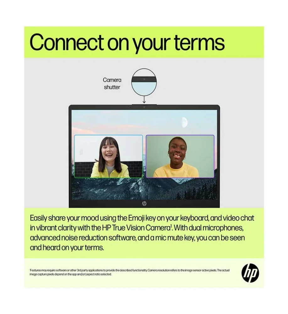 HP True Vision 720p HD camera with temporal noise reduction and integrated dual array digital microphones. HP Imagepad; Precision Touchpad support. Matte paint cover and keyboard frame finish, textured base.